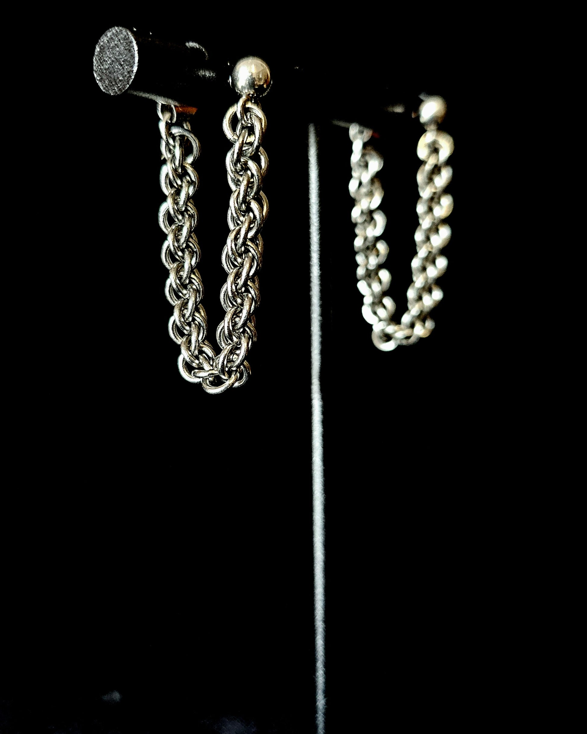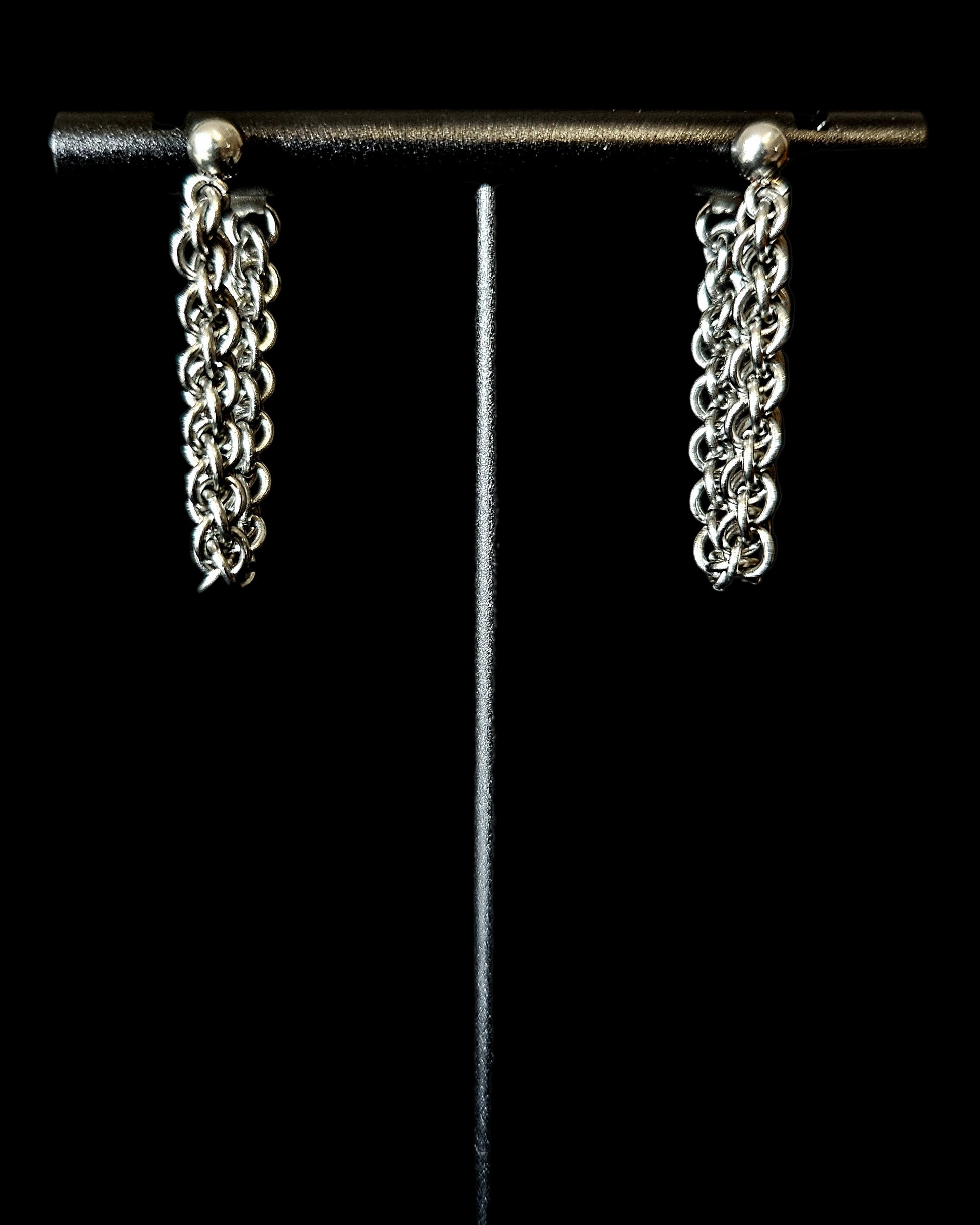 Delicately handwoven from stainless steel rings, the LAQUEUM earrings add a touch of elegant minimalism to any outfit.