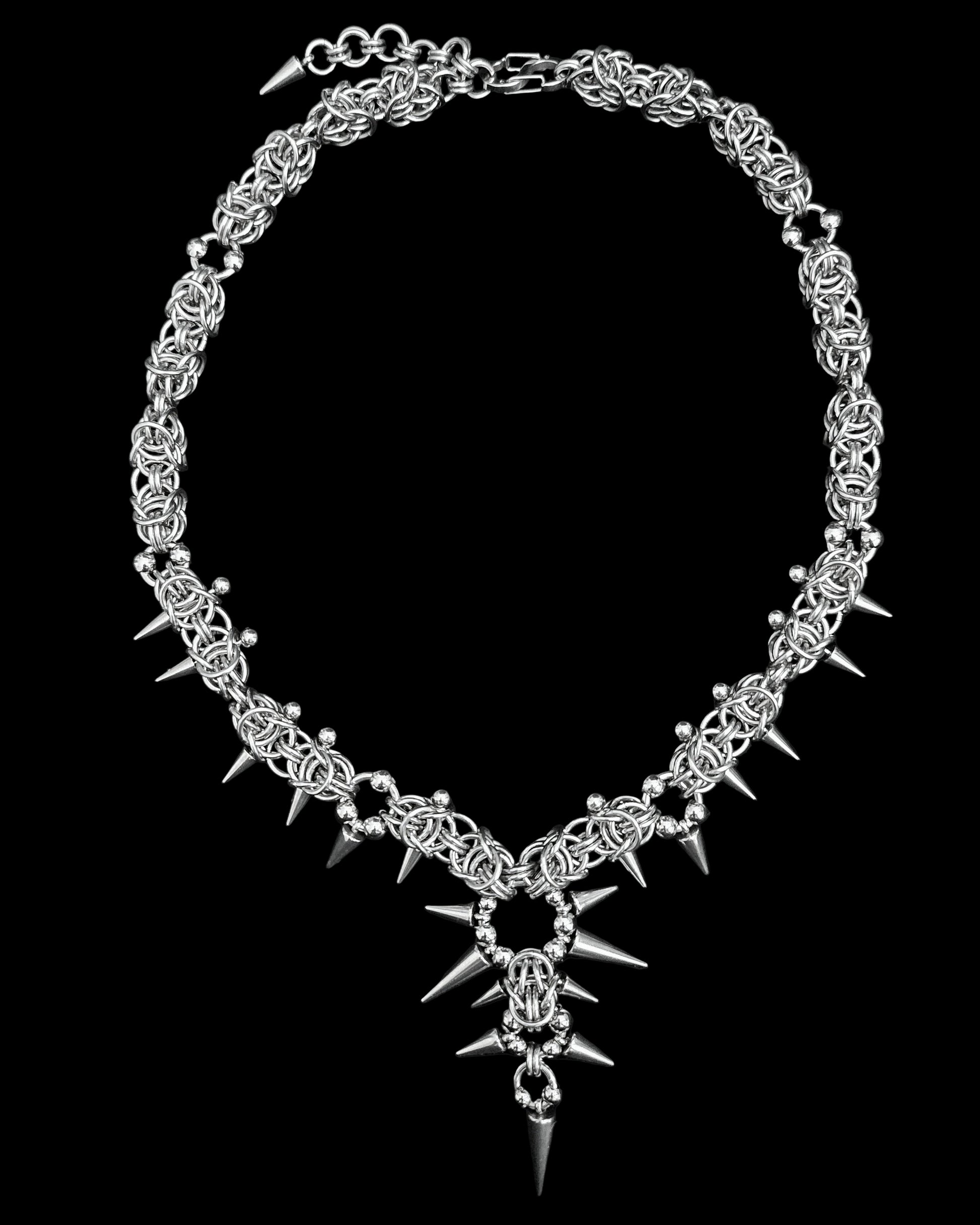 MINERVA is a fiercely edgy chain adorned with spiked piercings and finished with an s-shaped gate clasp.